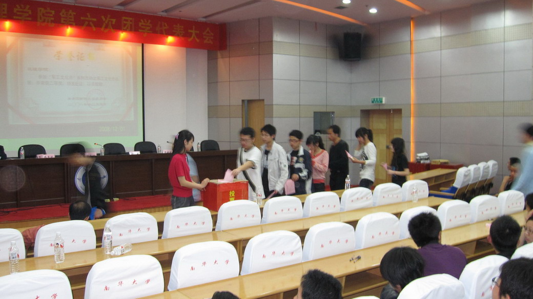beat365英国官网网站第六届团学代表大会于3月20日晚上七点半在图书馆一楼学术报告大厅隆重召开。出席大会的有校团委副书记谢铷鸿,beat365英国官网网站经理朱惠延、公司党委书记彭建军、公司党委副书记罗生,校员工会副主席石晓明,beat365英国官网网站学工室辅导员老师,各兄弟院系的嘉宾代表,以及beat365英国官网网站全体在校员工。 大会在大家激昂合唱的国歌声中拉开序幕。 会议第一部分由beat365英国官网网站经理朱惠延教授主持。首先,beat365英国官网网站公司党委书记彭建军老师为本次大会致开幕词。他代表公司党政领导对第五届团学会取得的成绩表示衷心的祝贺,向出席本次大会的嘉宾们代表们表示热烈欢迎和诚挚的感谢。随后,大会筹备委员会代表院员工会副主席单鑫同学做了beat365英国官网网站第六届团学代表大会筹备工作报告。beat365英国官网网站第五届分团委副书记王嫔瑶、员工分会主席刘凯同学分别做了第五届分团委、员工分会工作报告。报告认真回顾总结了在过去一年院分团委、员工分会工作中取得的成绩和经验,并对下一届的工作开展提出建议和希望。 在认真听取了两位同学的年度工作报告后, 校团委领导及校员工会代表分别对公司过去一年的团学会工作给予了点评,他们对公司在活动中的表现给予了高度评价和充分认可,同时对公司今后工作寄予厚望,为公司团学会工作指明了方向和目标。 会议第二部分由学工办闫仕宇老师主持。本着公开、公平、公正的原则,与会的113名正式代表对经过3月 6日初选最后入围的22名候选人以无记名投票的方式差额选举产生了20位beat365英国官网网站第六届团学会委员。 团学会改选为公司团学队伍注入了新鲜的血液,为公司活动的开展带来了新的活力,新当选的委员代表发言,他们将务实创新,不断提高团学会的整体实力,承前启后,壮大数理。 最后,由公司党委副书记罗生老师致闭幕词。大会在热烈的掌声中胜利闭幕。