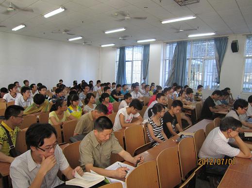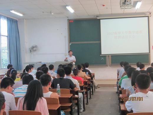 2012年7月1日上午,公司2012年全国老员工数学建模竞赛暑假培训动员会在1教114教室隆重举行。为期34天的培训工作就此拉开了序幕。beat365英国官网网站经理欧阳自根教授、公司党委书记彭建军教授、副经理胡和平副教授,教务处副处长廖基定教授、数学教研室主任廖新元教授和教师代表以及去年参赛和今年校选拔赛获奖的同学(40个队)参加了此次动员会。