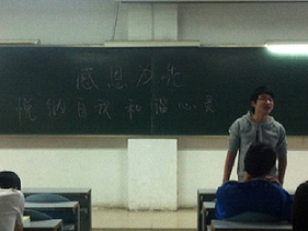 罗生老师:感恩既古老而有现实意义。感恩,首先就是感恩自己,了解自己,发展自己,从而悦纳自己。从这次的班会发言中,我觉得大家都长大了一些,说话都有自己的见解。这就是你们在大学的收获之一。大家都知道怎么去做,剩下的就是把它落实到实处,做好,做足,从而有一个美好人生。