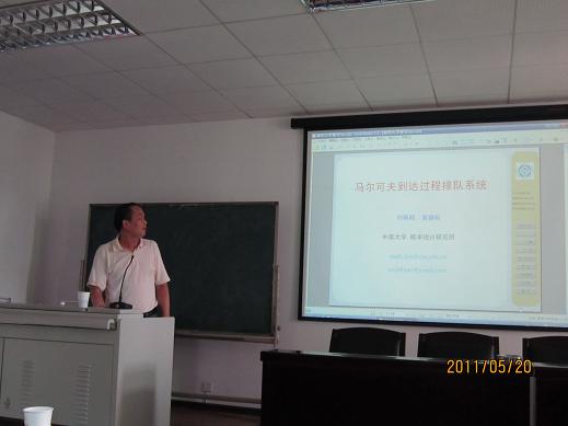 刘再明教授,主要研究概率统计,特别是在马尔科夫过程的研究中取得了显著成绩,主持国家自然科学基金2项,发表SCI十余篇。刘教授主要讲解的是马尔可夫到达过程排队系统。介绍马尔可夫到达过程的定义、基本性质以及应用领域和研究进展;三个马尔可夫到达排队模型的研究工作;提供数值实例来说明某些参数对系统性能指标的影响。刘教授,知识渊博,讲解得通俗易懂,让我们对于概率方面的知识有了更深的了解,使我们受益匪浅。
