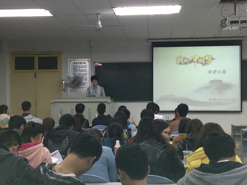 随着主持人介绍完比赛规则,选手们依次上场。在演讲中,选手们或慷慨激昂或情深款款地诠释自己心中的理想追求,对美丽中国梦的理解。大家把自己的梦想和祖国的强盛、社会的发展、人民的幸福紧紧的联系在一起,表达了希望通过自己的梦想让祖国更富强、更文明、更和谐的愿望,汇成了我们的“中国梦”。场下观众认真聆听,被这浓浓的爱国情所感染,会场的气氛也被选手们一次次推向高潮。经过激烈的角逐,最后,付云涛、徐炜迪、何威分获一、二、三等奖。