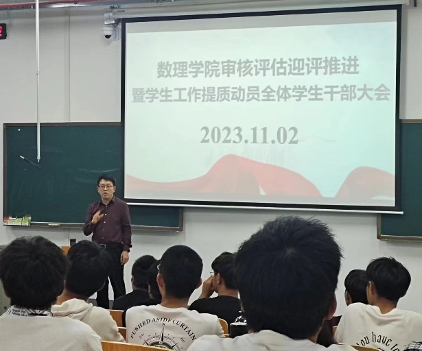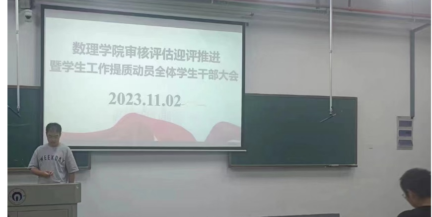 11月2日晚19:00,beat365英国官网网站在雨母楼202教室举行了beat365英国官网网站审核评估迎评推进暨员工工作提质动员全体员工干部大会。出席本次会议的有党委副书记田生军、以及辅导员欧雷、李延欢和王佳瑞。同时,还有公司团委、员工会全体干部,以及本科生和研究生全体班干部等参加本次会议。