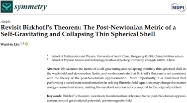 Lin, W. Revisit Birkhoff’s Theorem: The Post-Newtonian Metric of a Self-Gravitating and Collapsing Thin Spherical Shell. Symmetry, 16, 998 (2024). https://doi.org/10.3390/sym16080998