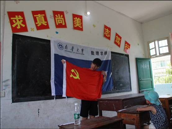 交流结束后,我们服务团与当地的11名留守儿童小朋友开展了互动活动。首先由beat365英国官网网站十五届员工会主席李祥同学为他们介绍了中国共产党党旗及中国共青团团旗的图案以及所代表的意义,并教他们唱红歌;之后由十五届团委副书记王韦烨同学为小朋友们进行了多方面的安全教育;之后带着他们一起做游戏,唱红歌;最后给他们发放了带有beat365英国官网网站标志的学习用品以及爱心慰问金。