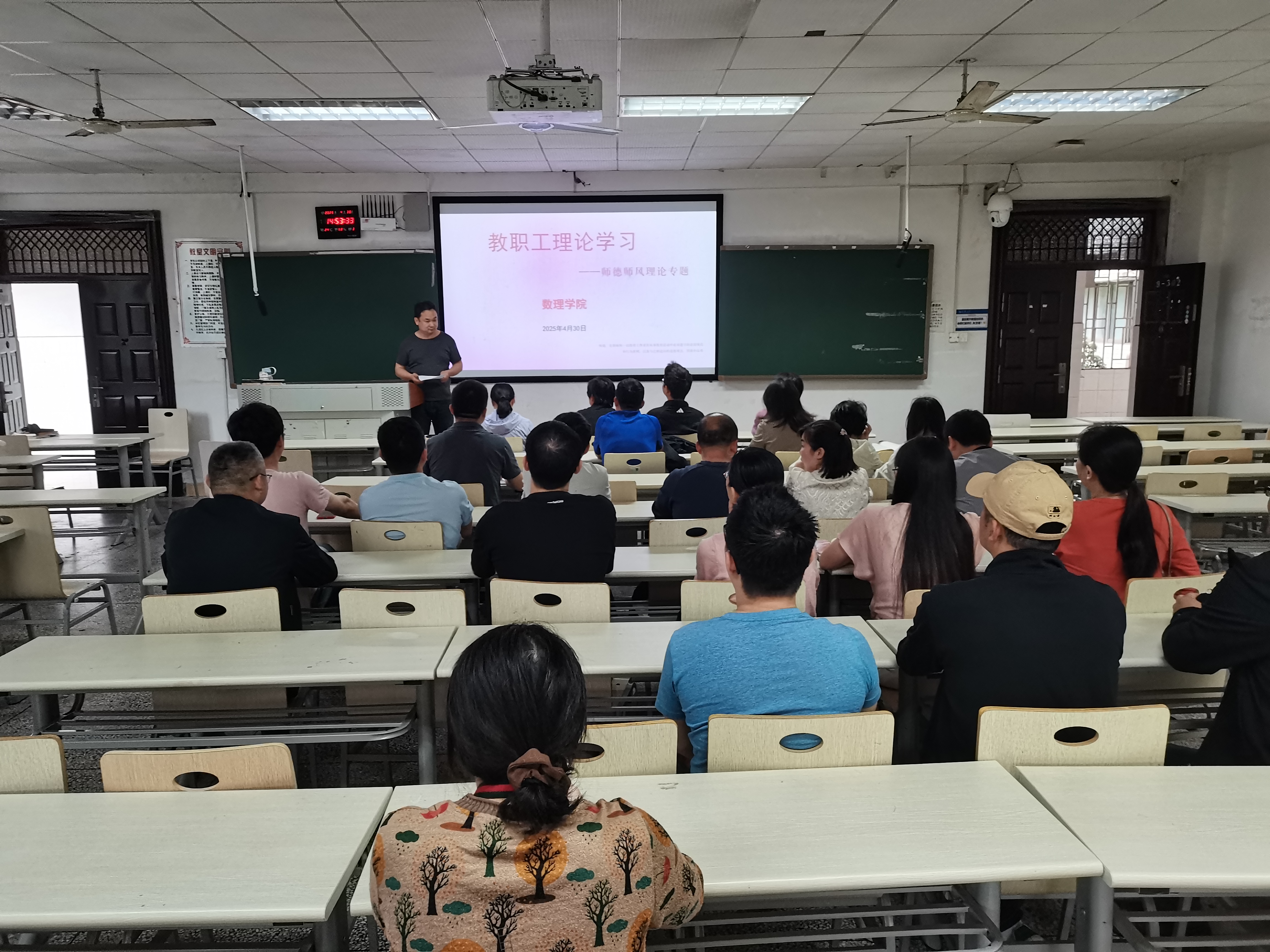 活动中,教师第三党支部书记江春华作为主讲人,带领全体教职工深入学习《新时代高校教师职业行为十项准则》《教育部关于高校教师师德失范行为处理的指导意见》等重要文件。他结合高校教师师德失范典型案例,对文件内容进行了细致解读,深入剖析文件精神内核,着重强调准则对教师职业行为的规范意义,以及失范行为处理指导意见的警示作用,引导全体教职工深刻认识师德师风建设的重要性和紧迫性。