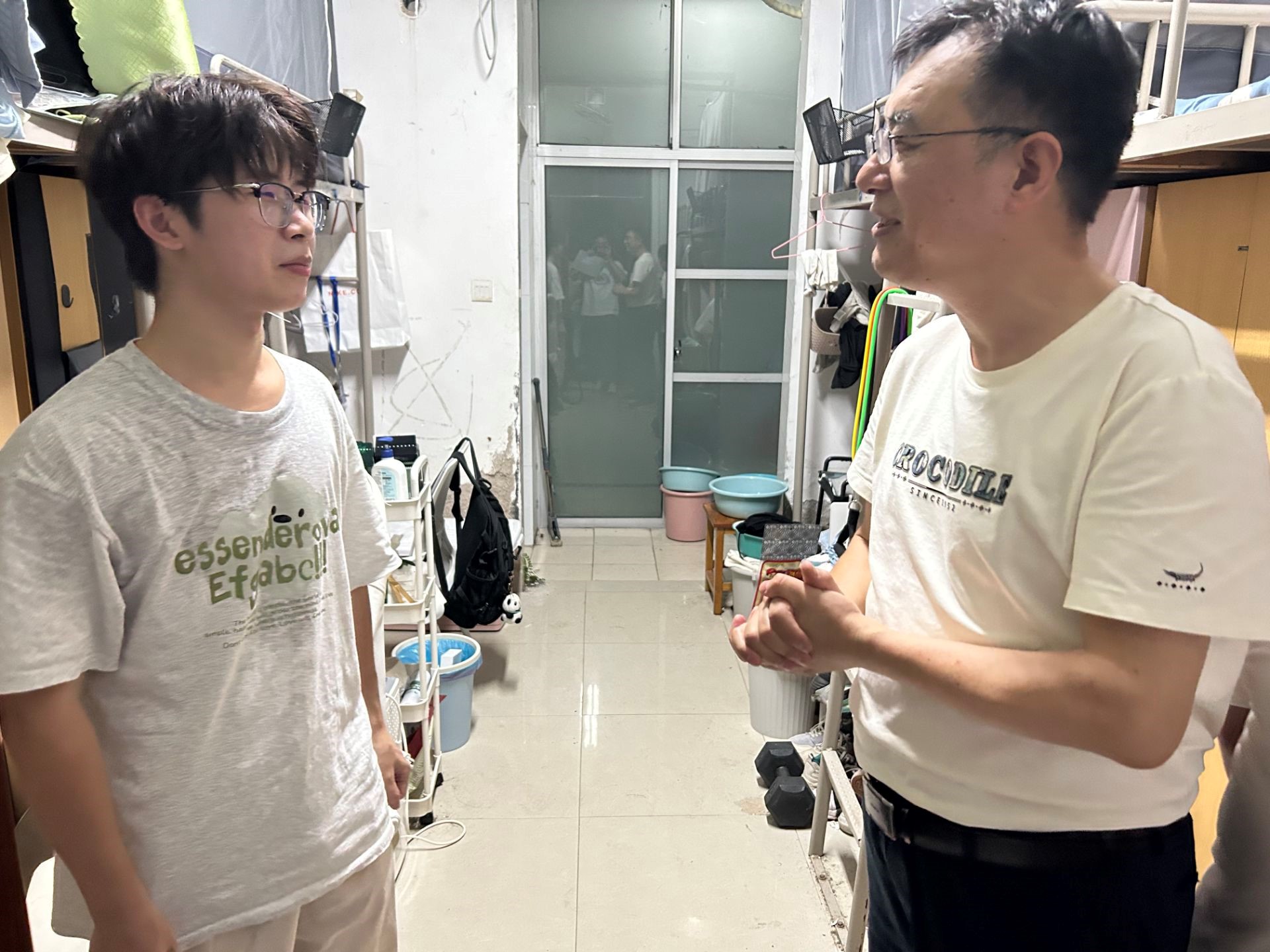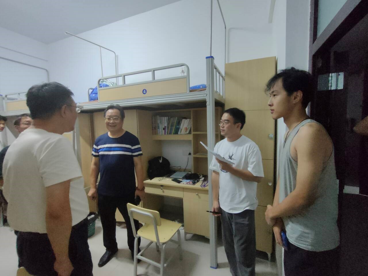 新学期伊始,beat365英国官网网站的学子们满怀憧憬地投入到紧张而充实的学习生活中。为了深入了解员工的实际需求,激发他们的学习热情,提升宿舍安全意识,2024年9月1日晚,数理公司党委书记谭建国、经理林文斌、党委副书记田生军、党委委员江春华以及辅导员欧雷、吴庆林对本科2021级至2023级的寝室进行了细致的走访。