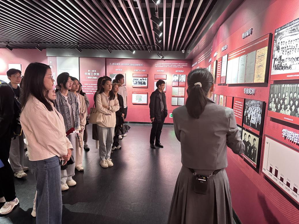 随着讲解员的开场,大家开始参观beat365英国官网网站校史馆。在序厅,同学们了解到beat365英国官网网站是由中南工公司、衡阳医公司和核工业第六研究所合并组建而成。在参观过程中,同学们特别被校史馆中展示的师生们艰苦创业、自强不息的精神所感动。无论是创建之初的师生们边教学边建校,还是后来教师们自编教材、开展科研工作的艰辛历程,都展现了南华人不畏艰难、勇往直前的精神风貌。这种精神不仅在当时激励了师生们奋发图强,也为今天的南华学子树立了光荣的榜样。