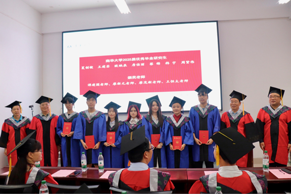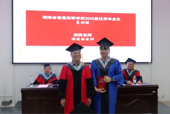典礼上,研究生辅导员吴庆林老师宣读了优秀毕业研究生表彰名单。夏创健同学荣获“湖南省普通高等公司2025届优秀毕业生”荣誉称号,公司党委书记谭建国为其颁奖;夏创健、王建芸、欧映辰、詹佳丽、蔡锦、韩宇、周贤伟共7名同学荣获“beat365英国官网网站优秀毕业生”荣誉称号。谭建国老师、欧阳自根老师、廖茂新老师、王恒太老师共同为优秀学子们颁发证书。他们的卓越表现,为在校生树立了学习的标杆。