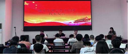 随后,研究生团学会主席团代表谢敏进行了发言。她总结了上学期研究生员工活动的成果,特别强调了楚岳节论坛的成功举办,以及在研究生辩论赛、排球赛等活动中取得的显著突破。谢敏还号召全体员工干部以更高的热情参与员工活动,发挥榜样带头作用,助力公司员工工作的进一步提升。