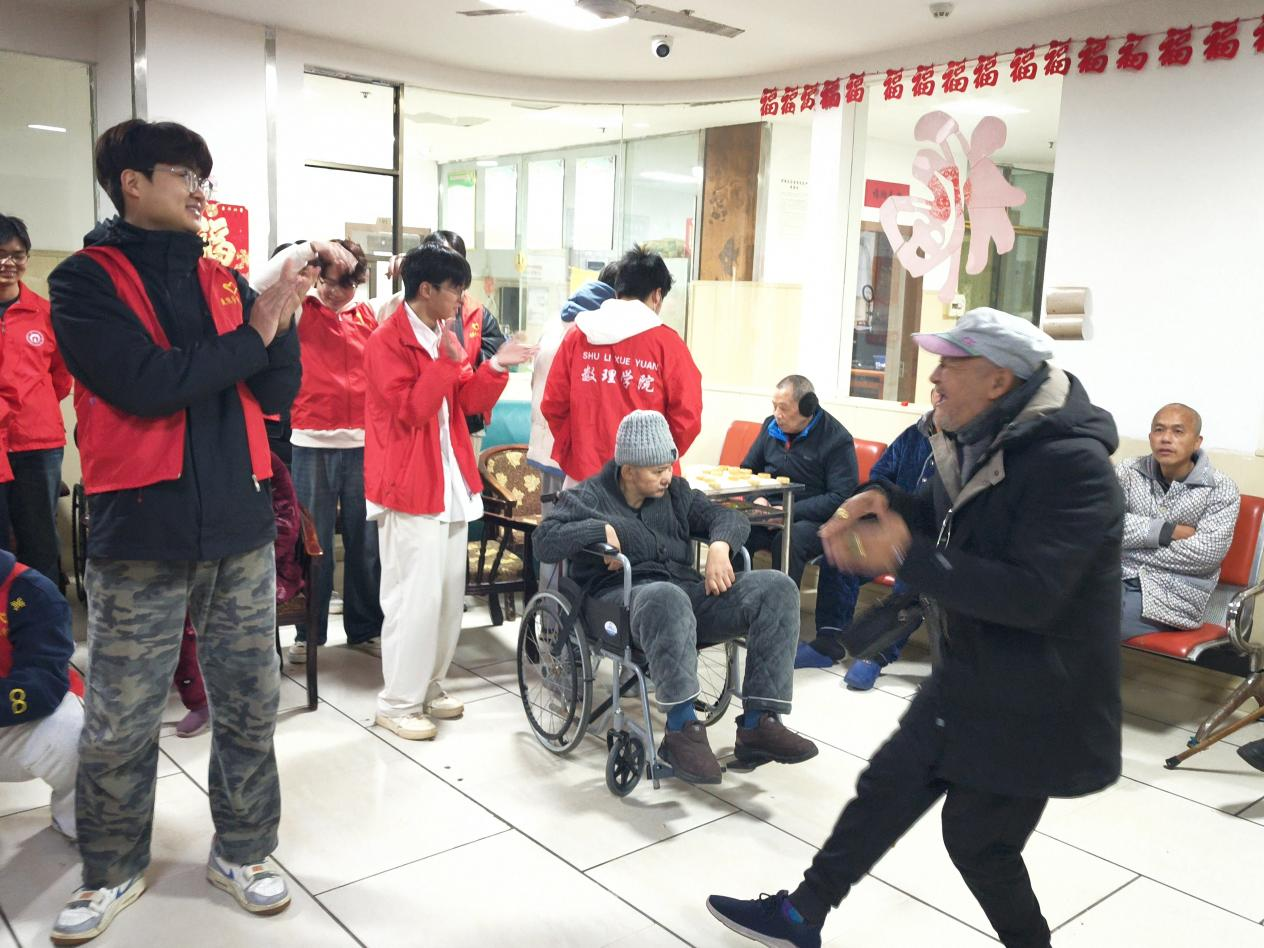 在清洁工作圆满结束后,一场精彩纷呈的文艺表演紧接着拉开帷幕。首先,志愿者们集体带来手语舞《感恩的心》,他们用灵动的双手,将感恩的心意传递给在场每一位老人。随后,激昂的诗词朗诵《沁园春・长沙》登场,朗读者们用洪亮的嗓音,生动地展现出伟人的壮志豪情。紧接着,欢快的拍手操节奏明快,带动现场气氛热烈起来。在个人才艺展示环节,多元且精彩的节目接连上演,将现场氛围推向高潮。老人们沉浸其中,掌声此起彼伏。表演以《我和我的祖国》收尾,志愿者与老人并肩合唱,老少歌声交融,深情礼赞祖国。