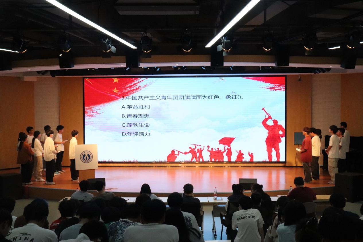 大赛第二环节,知识竞答。2023级和2024级各团支部代表同时上台,围绕党团知识、时政热点等内容展开答题较量。本环节考验各代表的知识储备与临场反应,充满紧张与挑战。