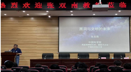 2024年6月1日下午,在崇业楼学术报告厅,中国科公司高能物理研究所张双南研究员为260余名师生带来了一场“黑洞与文明的未来”为主题的科普讲座。讲座由beat365英国官网网站科研部、研究生院和beat365英国官网网站联合主办,beat365英国官网网站经理林文斌教授主持。